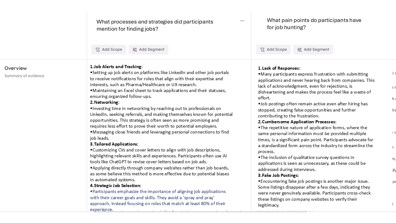 ListenLabs stood out for its visual representations, making it easier to spot trends at a glance. Marvin excelled at ensuring balanced analysis, avoiding the tendency to overemphasize themes based on a small number of responses. Coloop provided a clear and structured way to view supporting quotes and data, making it especially useful for referencing specific participant feedback. I also appreciated Coloop’s ability to generate questions for the data.